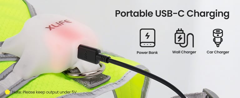 Hassle-Free Recharging – Featuring easy USB - C charging, this vest harness offers a universal solution. For your dog's night walking needs, just plug it in via the included charging cable, full charge in 2 hours. The built - in battery keeps the lights illuminated for up to 15 hours, ensuring your pup stays visible on every night walk. No more worrying about dead lights ruining your outing-enjoy simple, fast, and reliable charging for safe adventures with your pup!